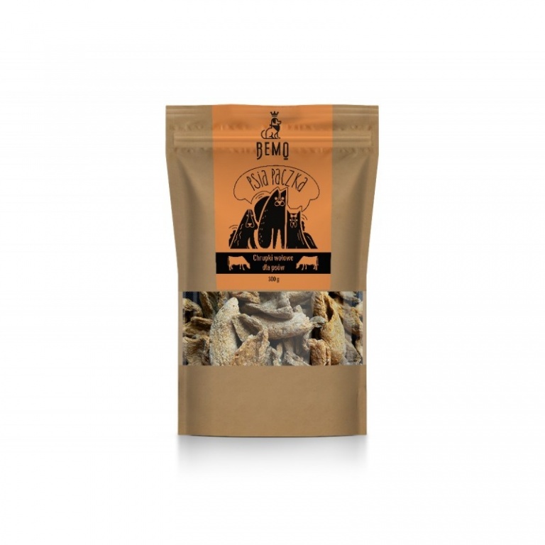 Bemo liellopu kraukšķi ir gardi un veselīgi našķi suņiem, kas veidoti no liellopu gaļas un kaulu maisījuma. Šie kraukšķīgie gardumi satur arī garšaugus un vitamīnus, kas veicina suņa veselību un labsajūtu. Tie ir lieliski piemēroti kā uzkodas vai apbalvojums treniņu laikā.