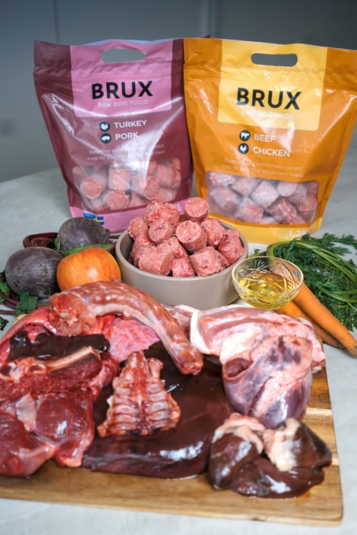 BRUX pilnvērtīga un sabalansēta, neapstrādāta jēlbarība suņiem, visām dzīves stadijām.