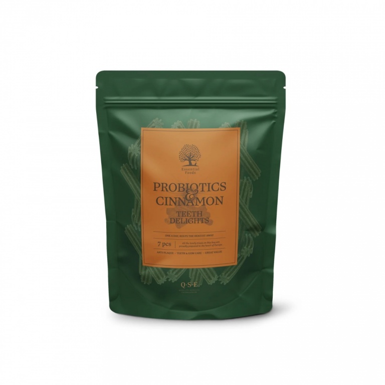 Pusmitras zobu kopšanas uzkodas suņiem ar kanēli, piparmētru un probiotiķiem