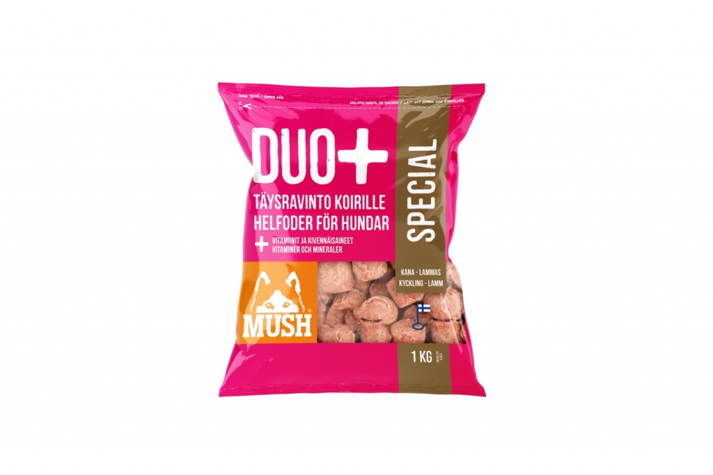 MUSH DUO+ SPECIAL suņiem vista/jērs - ​​ir pilnvērtīga barība, kas piemērota visām suņu šķirnēm.