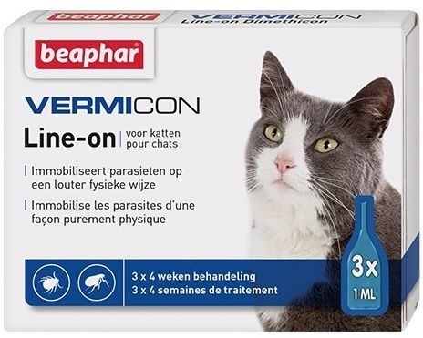 Beaphar IMMO SHIELD LINE-ON CAT pilieni ar dimetikonu pret parazītiem kaķiem (1-10kg), 3gab x1ml.
