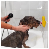 Lielisks traucēklis peldēšanās laikā. Tas padara vannošanos patīkamāku gan sunim, gan tā saimniekam.